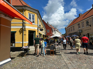 Wilma elsker nye steder og spennende lukter, så ferien bød på mange inntrykk. Vi gikk lange turer langs hvite strender og ruslet gjennom sjarmerende brosteinsgater. Vi tok pauser med is på kafé og koste oss på stranda – det var ikke for varmt, så Wilma nøt både solen og strandlivet i sitt eget tempo. Jeg var litt spent på hvordan hun ville takle et besøk til Djurs Sommerland, med mye folk og lydene fra berg-og-dalbanene. Men det gikk over all forventning – hun virket rolig og upåvirket av bråket, og jeg tror faktisk hun syntes det var ganske spennende. Mens resten av gjengen suste rundt på karuseller og trampoliner, holdt Wilma og jeg oss på bakken og tok det hele med ro.